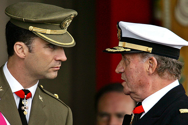 29 мая 2005 г.Испанский принц Фелипе и король Хуан Карлос в городе Ла-Корунья на севере Испании.
